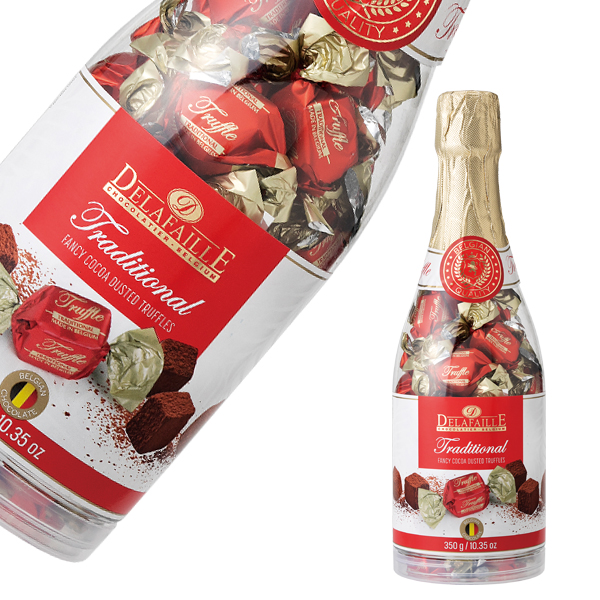 シャンパンボトルをあしらった容器に風味豊かなトリュフチョコをたっぷり詰め込みました。