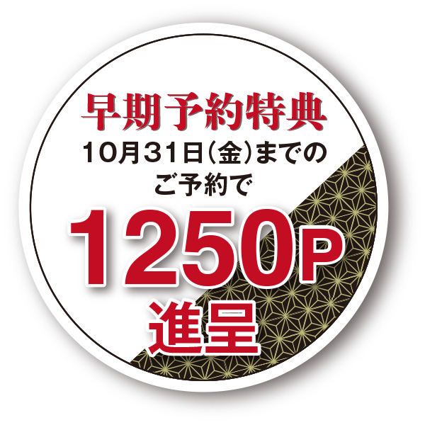 ◆ 国産車海老のうま煮 ◆ フカヒレの姿煮 ゼリー寄せ ◆ たらば蟹の甘酢キャビア添え ◆ いかり黒豚の 黒酢酢豚 ◆ 国産豚肉の焼豚 ◆ いかり地鶏の油淋鷄 ◆ 車海老の団子 ◆ くらげの酢の物 ◆ 国産野菜の甘酢漬け玉子巻 ◆ ピータン ◆ 栗の甘露煮紹興酒風味