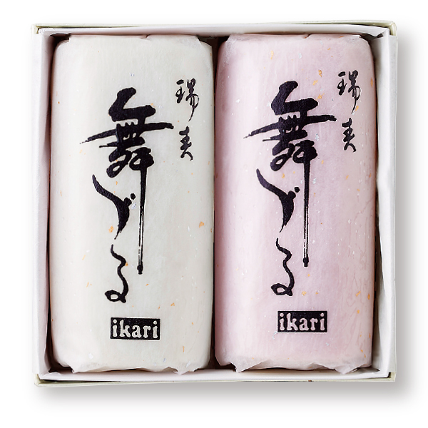 お正月用かまぼこ人気商品の瑞春舞づるの紅・白を1本づつセットしました。