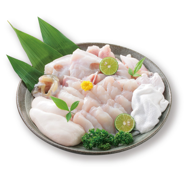 白子持ち養殖とらふぐ切身・アラ・身皮、豆腐、白菜、