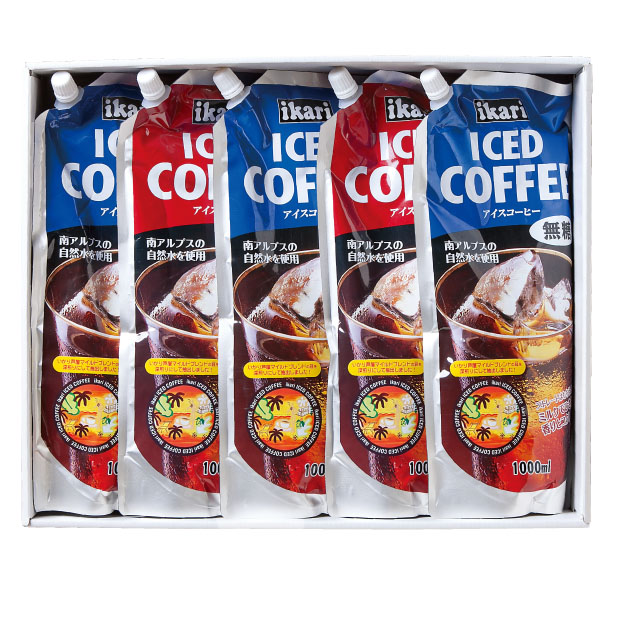 アイスコーヒー無糖(1,000ml)3袋、加糖(1,000ml)2袋