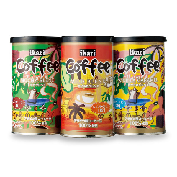モカブレンド(粉)、マイルドブレンド(粉)、 バニラキャラメル(粉)(各160g缶)