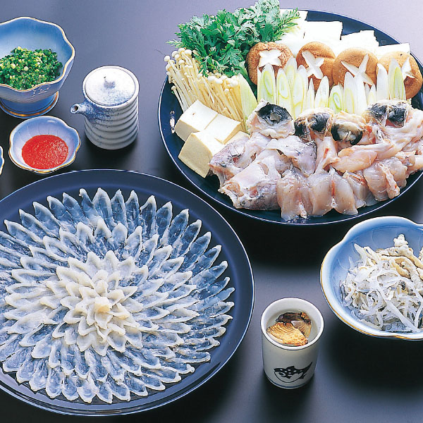 刺身(180g)、切身・アラ(500g)、身皮 (150g)、ヒレ酒用焼ヒレ、ふぐしょうゆ (ぽん酢)、もみじおろし、きざみねぎ ●消費期限:冷蔵で3日