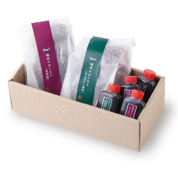 鴨肉のロースト(ローズマリー風味)約200g、鴨肉のロースト(黒胡椒)約200g、グレイビーソース、グレイビーソース(バルサミコ風味)各2個[箱サイズ:約11cm×22.5cm×7cm]