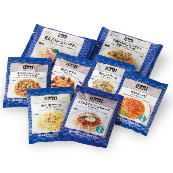 レンジで簡単できあがり!おいしくて便利ないかりの冷凍スパゲティ。8種類のおいしさを詰合せました。