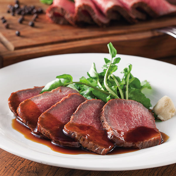 旨みのある国産牛赤身肉を、表面は香ばしく、オーブンでじっくり焼き上げました。「和風煮込み」は、醤油と赤ワイン風味の和風ソースで。 「赤身肉」は、野菜とバルサミコ酢でつくる洋風のグレイビーソースでどうぞ。
