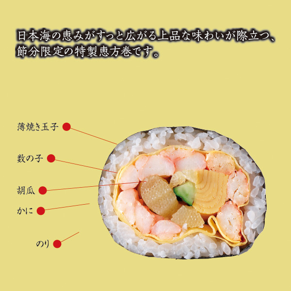 日本海の恵みがずっと広がる、上品な味わいが際立つ節分限定の特製恵方巻です。