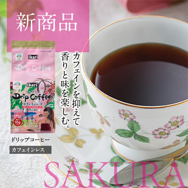 ほんのり桜香るマドレーヌと、やさしい味わいのカフェインレスコーヒーをセット。